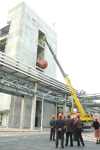 江山股份草甘膦工地正在吊裝反應釜