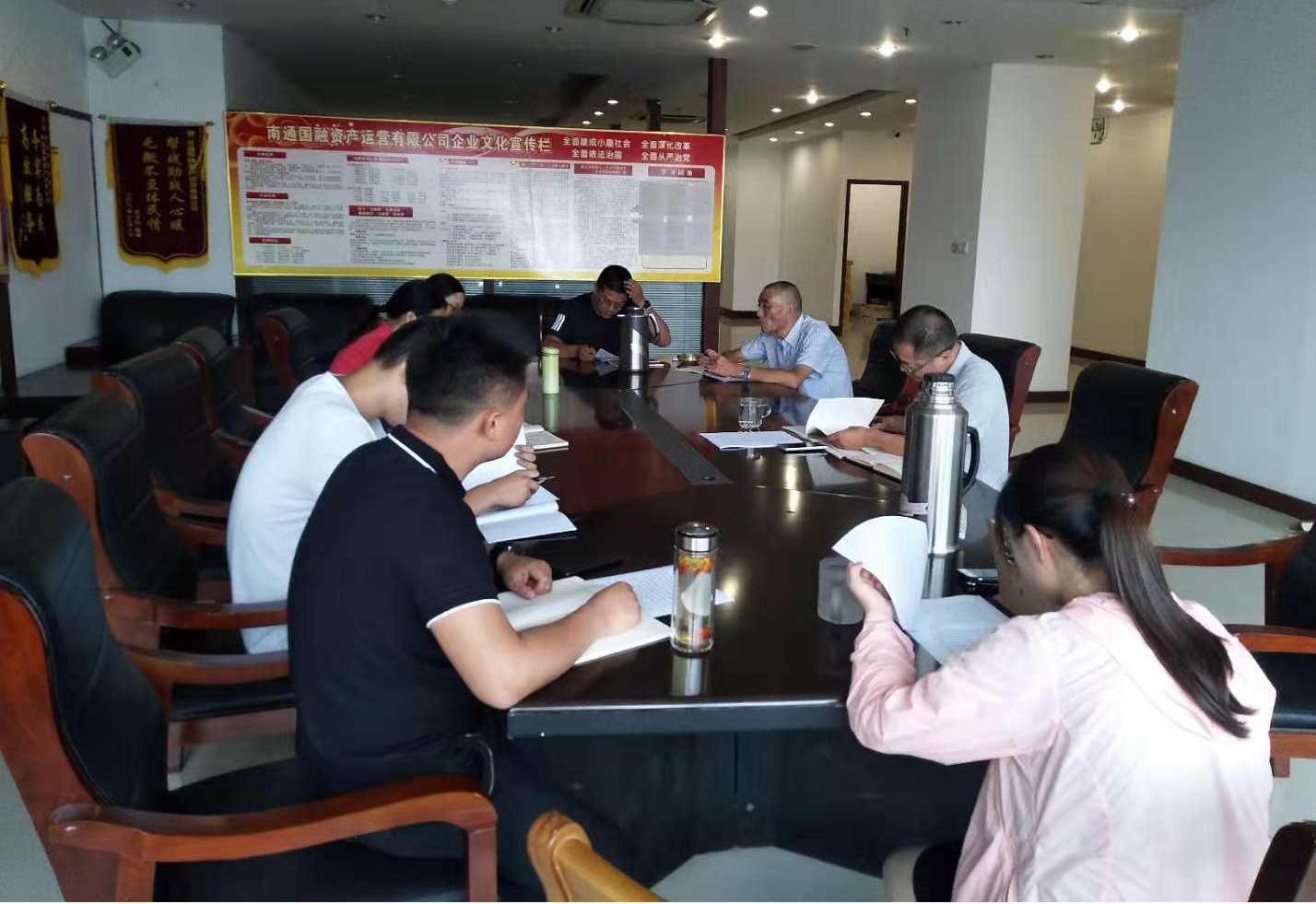 為了更好的落實公司黨委要求,進一步加強黨員干部的先鋒模范作用,近日,南通國融資產運營有限公司第一黨支部以“學習黨章黨規心得體會交流”為主題,在公司黨員活動室召開了主題黨課學習活動。活動由國融資產支部書記瞿偉主持,黨委書記劉海兵、第一支部相關黨員及積極分子共8人參加此次活動。