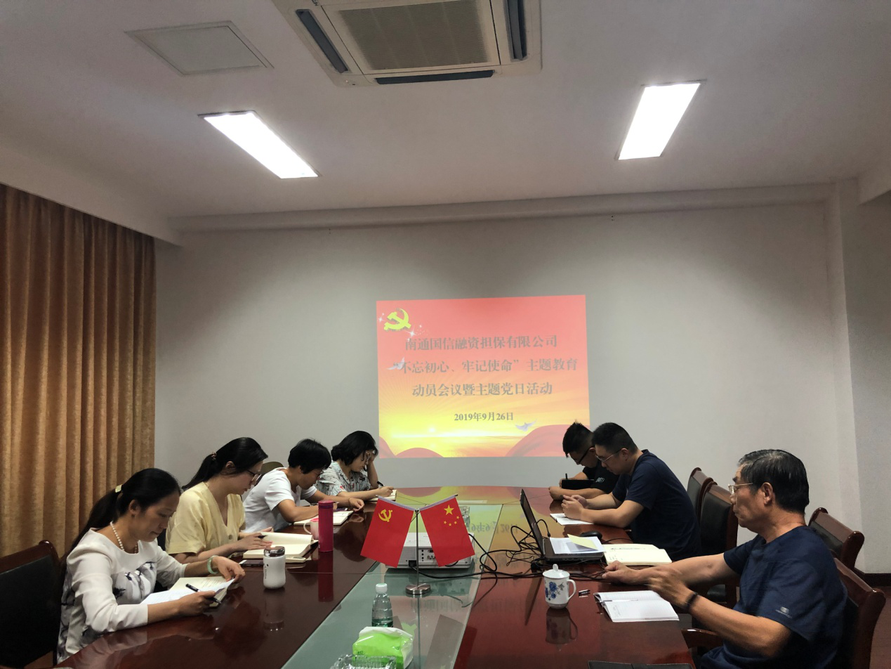 9月26日下午,南通國(guó)信投資擔(dān)保有限公司召開(kāi)“不忘初心、牢記使命”主題教育動(dòng)員會(huì),公司全體黨員參加會(huì)議,入黨積極分子和群眾代表列席會(huì)議。