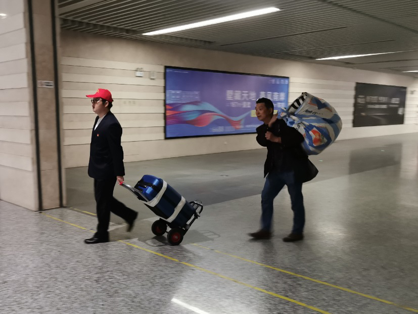 活動中,黨員同志共14人分別位于客運東站地下公交車上下客點、出租車上下客點、地上扶梯中轉點以及志愿服務崗臺咨詢點做方向指引、秩序維持、搬運行李等,遇到不知如何到達目的地的乘客,黨員志愿者熱心幫忙查詢路線、到達方式,并一路帶領將其護送至售票處、公交站臺。