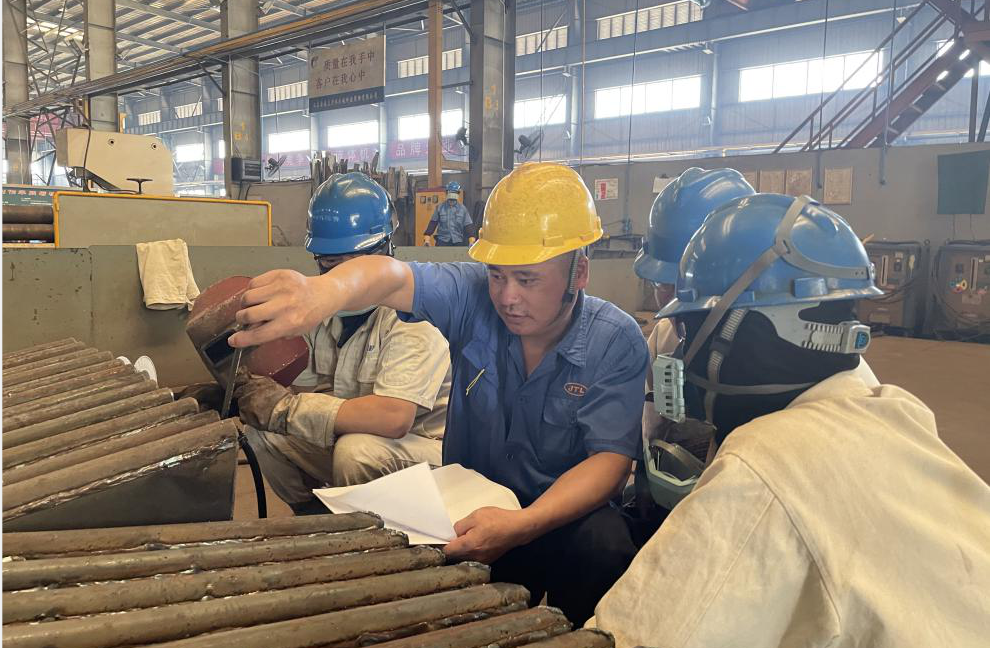 金通靈,一個有著深厚歷史底蘊的企業(yè),是孕育勞模的沃土,多年來,培養(yǎng)出3名省勞動模范,6名市勞動模范,1名區(qū)勞動模范,2018年6月,金通靈成立了勞模集群黨支部,充分發(fā)揮勞模示范效應,引領產(chǎn)業(yè)工人加入到創(chuàng)新驅動發(fā)展的行列,助力企業(yè)發(fā)展。尹芬興便是勞動模范中的代表人物,今年他被評為“江蘇省勞動模范”,年近五十的他已在金通靈走過26年的青春歲月。當年尹芬興從安徽老家出來時,他還不到20歲,憑著一腔熱血和對未來美好的憧憬來到南通工作。他把勞動當做樂趣,跟同事們交流經(jīng)驗、切磋手藝,共同解決工作中遇到的難題是他工作的常態(tài)。26年來,他不斷摸索,不斷學習,不斷提升,積極發(fā)揮勞模示范帶頭作用,帶領團隊成員積極投身到創(chuàng)新工作中,多年來攻克多個技術難題。其中“兩節(jié)身”前盤的成型技術,低溫升蒸汽壓縮機組合成型免加工藝加強圈技術,干熄焦煤氣風機制作工藝改進等創(chuàng)新成果不僅節(jié)約了大量生產(chǎn)成本、縮短生產(chǎn)時間,更保證了產(chǎn)品質量,為公司創(chuàng)造了巨大經(jīng)濟效益。如今的尹芬興是葉輪成型組一組組長,每日負責的事情繁雜,他卻總能一絲不茍地完成,臟活、累活搶著干,白色工作服印著他斑斑勞動的印記,也承載了他一路奮斗的榮光。26年來,他始終把“愛一行、干一行、專一行”作為工作的信條,以此激勵自己在工作崗位上奮發(fā)成才。就是憑著這樣的信念,他在一線崗位上堅守了二十余年,用堅持堅毅的姿態(tài)詮釋著勞模精神,讓勞模精神發(fā)光發(fā)熱。今年,尹芬興光榮地加入中國共產(chǎn)黨,高舉右拳,在黨旗下莊嚴宣誓,他黝黑發(fā)亮的面龐上印刻著堅定的信仰,從此,懷揣著共產(chǎn)黨人的初心使命,他又踏上了新的征途。